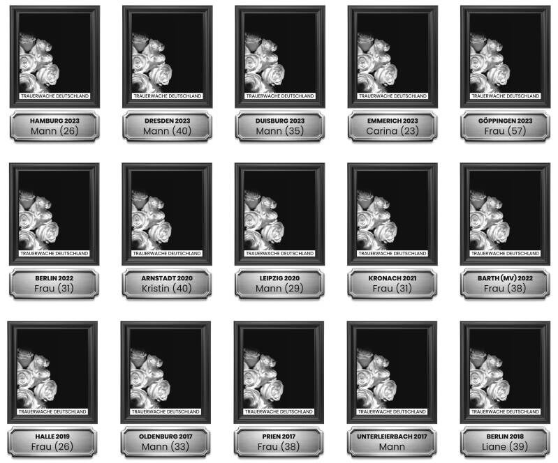 (The phrase 'TRAUERWACHE DEUTSCHLAND' is copyright certified)